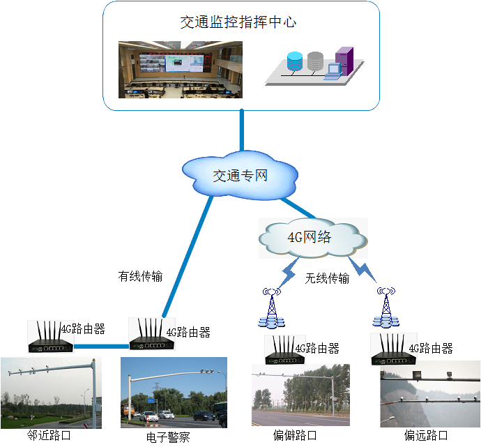 在每个监控点部署4G路由器,可通过有线专线将视频数据回传到监控中心。